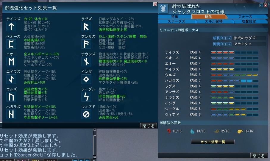 それくらいになったらアンサズの御魂強化を解除してテイワズの魔力+20知力+20を